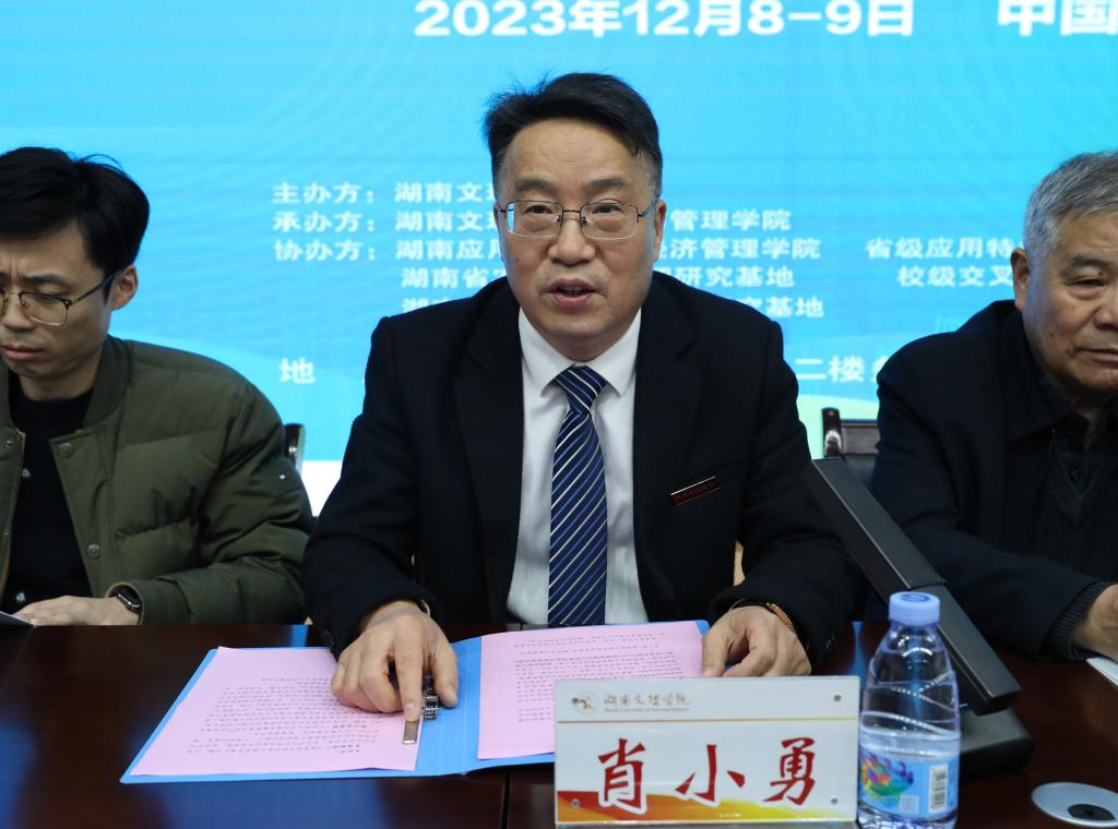 会上,俄罗斯托木斯克国立理工大学博士 Hatem Hassanin、加拿大萨斯克里贾纳大学博士 Patrick Wong、湖南人文科技学院商学院博士Muhammad Mohsin、我校经济与管理学院院长贾先文分别结合会议主题作了专题报告,分享了各自的研究成果与观点看法。