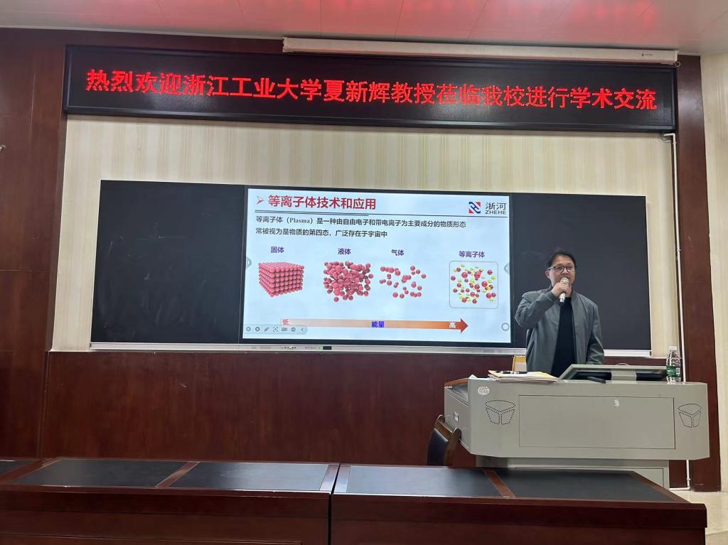 本网讯(通讯员 尤万里)4月19日,化学与材料工程学院邀请国家级青年人才、浙江省高层次人才专家、浙江工业大学夏新辉教授来我校白马湖讲坛作学术报告,夏新辉教授报告的题目是“等离子体技术及其电池材料应用”。化材学院师生代表聆听报告。