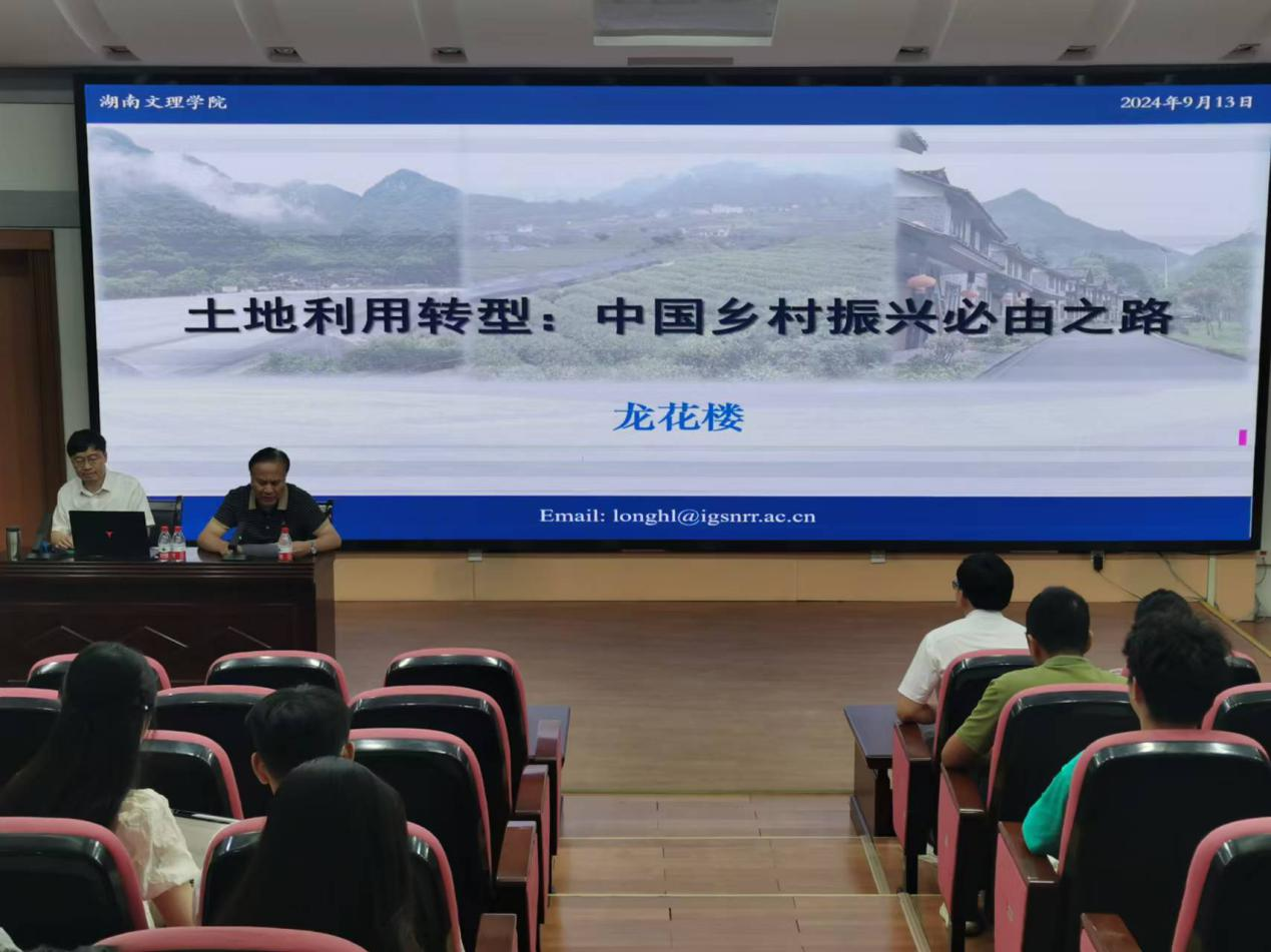 本网讯(文字 邱慧琴)9月13日上午,英国社会科学院院士、广西大学特聘教授、中国科学院地理科学与资源研究所区域农业与农村发展研究中心副主任龙花楼来我校作题为“土地利用转型:中国乡村振兴必由之路”的学术报告。报告由学校党委副书记李红革教授主持。地理科学与旅游学院、经济与管理学院相关专业师生近200人参加本次学术报告会。