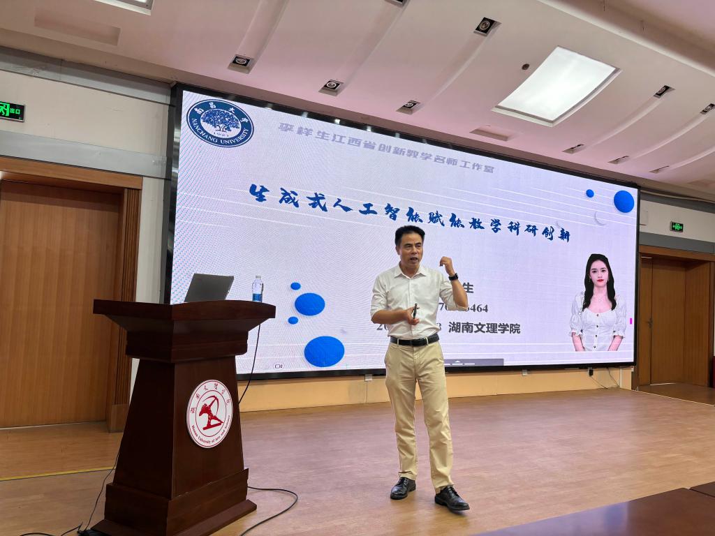 本网讯(文/图 马冯)10月18日下午,学校教务处和化学与材料工程学院在图书馆报告厅共同主办的“关于生成式人工智能赋能教学科研创新”的讲座吸引了众多教师的关注。主讲人南昌大学物理与材料学院李样生教授以其深厚的专业知识和前瞻性视角,深入探讨了人工智能技术在教育和科研领域的应用,为在场的听众带来了一场思想的盛宴。全校100多名教师参加了讲座。