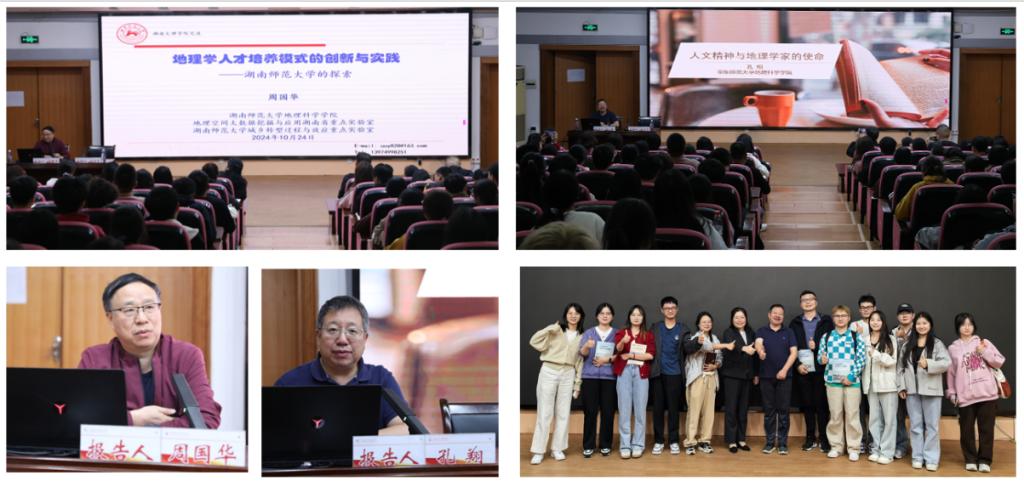 《地理学导论》是地理科学专业人才培养方案中的新增课程,在2024级地理科学专业首次开设。本课程除了由学院教授博士4人团队授课外,此次特邀4位地理专业学院院长同台授课,2024级地理科学和地理信息科学专业全体学生和部分高年级学生踊跃“抢座”。地理名师们授课时信手拈来的从容,充分展示了他们厚积薄发的沉淀,讲授中他们与同学们频繁互动,精彩授课为地理学子打开了眼界,放大了格局。整场活动气氛热烈,师生们受益匪浅。