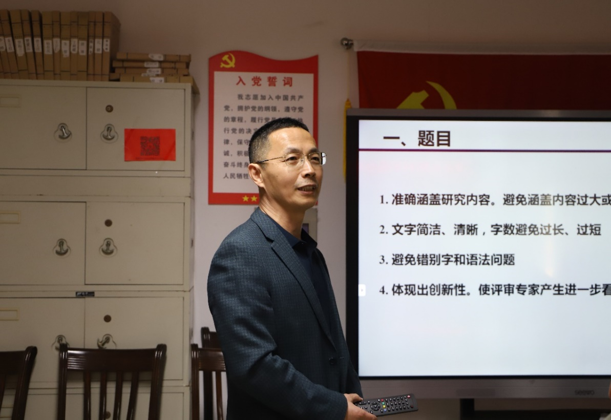 周玉教授以“国家自然科学基金(青基、面上)项目申请书撰写——如何使本子脱颖而出”为题,结合详实的实例分析,从“如何拟题”“如何撰写摘要”“如何写好立项依据和研究内容”等多方面进行详细讲解。他强调,突出创新点是使申请书脱颖而出的“第一要义”,也要注重申请书各部分内容之间的逻辑关系,使彼此之间“环环相扣”,达到“大同行能看明白,小同行能有收获”的总体要求。周玉教授还强调到,段落撰写要语言精炼、逻辑缜密,不可简单罗列。