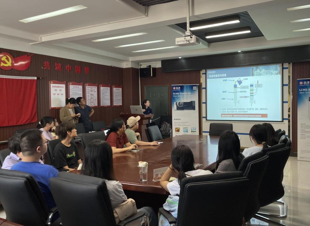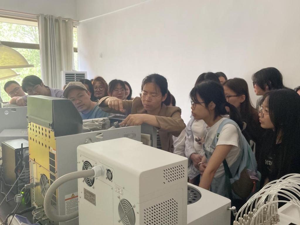 在实机操作与维护讲解环节。岛津湖南分析中心高级工程师靳凤珍带领同学们进行实机讲解。从样品进样到数据采集,每一个细节都讲解得清晰透彻。同时,针对仪器的简单维护知识,如日常清洁、故障排查等,也进行了耐心指导。同学们认真聆听、仔细观察,不少同学还拿出笔记本记录关键要点。部分同学在靳老师的指导下,亲自上手操作仪器,体验了实际操作过程,将理论知识与实践紧密结合。