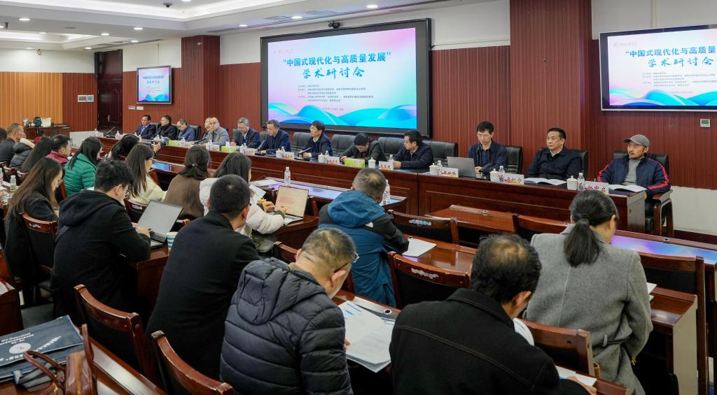 本网讯(经管学院 供稿)11月22日,由湖南文理学院主办,经济与管理学院、马克思主义学院联合湖南应用技术学院经济管理学院共同承办的“中国式现代化与高质量发展”学术研讨会在逸夫楼B603会议室召开。来自中国社会科学院、西安交通大学、东莞理工学院、江西财经大学、福建师范大学等多所高校和科研机构的专家学者齐聚一堂,围绕中国式现代化的理论前沿与实践路径展开深入交流。会议由经济与管理学院院长贾先文主持。