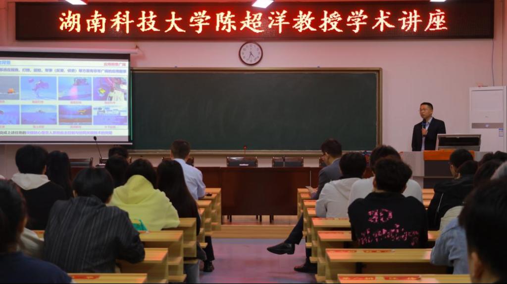 4月17日下午,湖南科技大学信息与电气工程学院院长陈超洋教授在实训楼B803作题为“海域无人系统自主控制与协同关键技术研究”的学术报告,学院百余名师生到场聆听。陈超洋教授聚焦海域无人系统的自主控制与协同技术,结合团队研究实践,全面介绍了智能感知、路径规划及多机器人协同控制等领域的最新进展与未来挑战。报告结束后,师生就技术难点与应用前景与陈超洋教授展开充分交流。