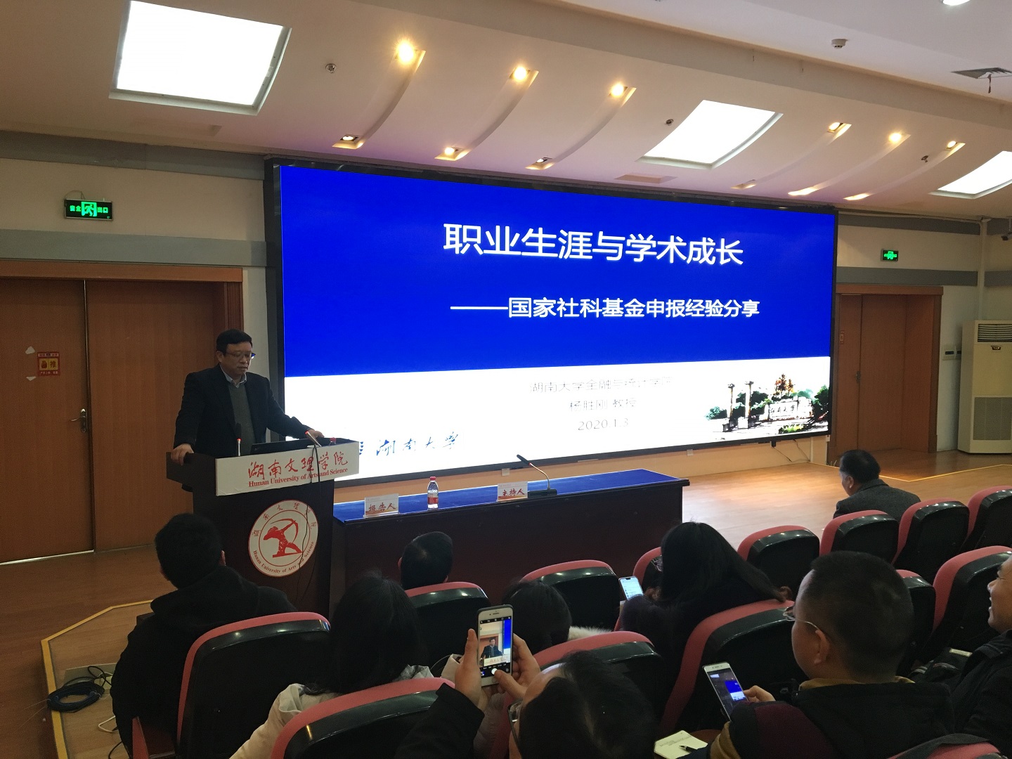 本网讯(通讯员 张建军)1月3日下午,我校2020年国家项目申报指导报告会在图书馆多功能报告厅举行。报告会由曾任湖南大学校党委常委、副校长,现为湖南大学金融与统计学院教授、博士生导师杨胜刚教授主讲,我校副校长李红革教授主持,全校160余名教师聆听了报告。