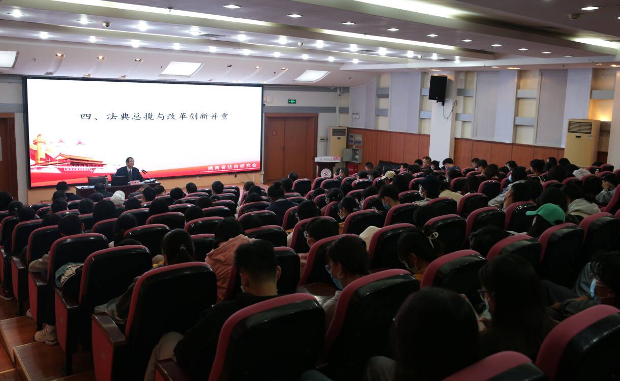 常德市社科联、常德市法学会有关领导以及我校文法学院的师生代表、市直相关单位工作人员、各社科类社会组织、社科基地的负责人共200余人聆听讲座。(一审 易姣 二审 杨静 三审 袁勇军)