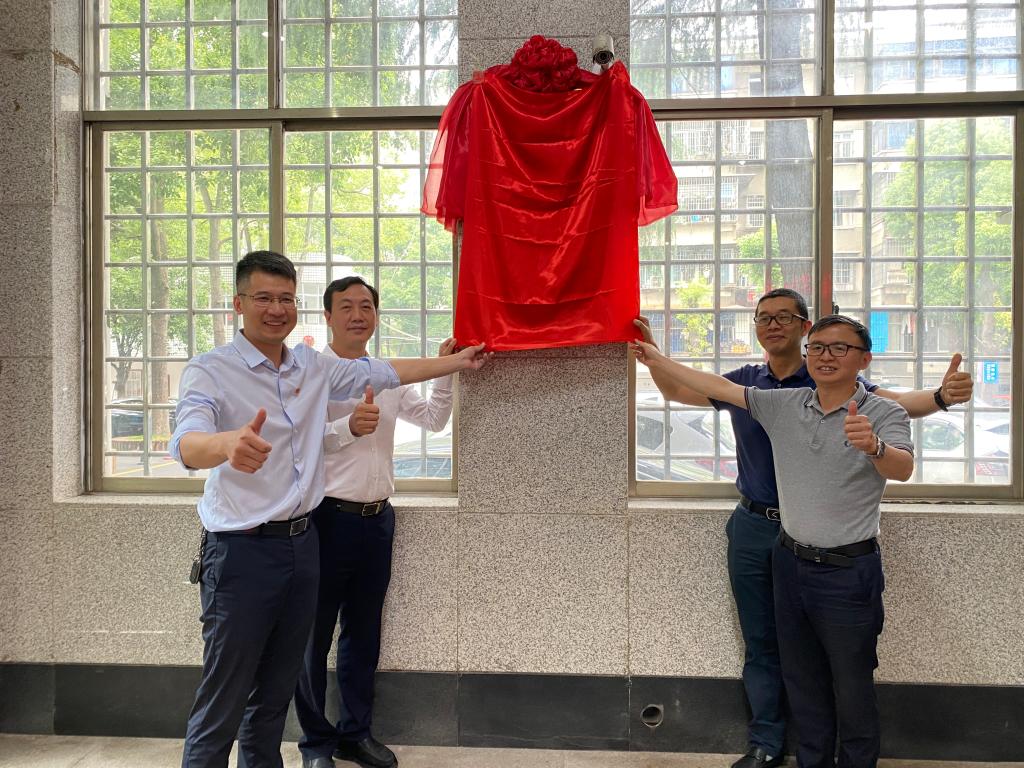 校长刘宇文(左2)等领导为学校“实习基地”“就业基地”揭牌