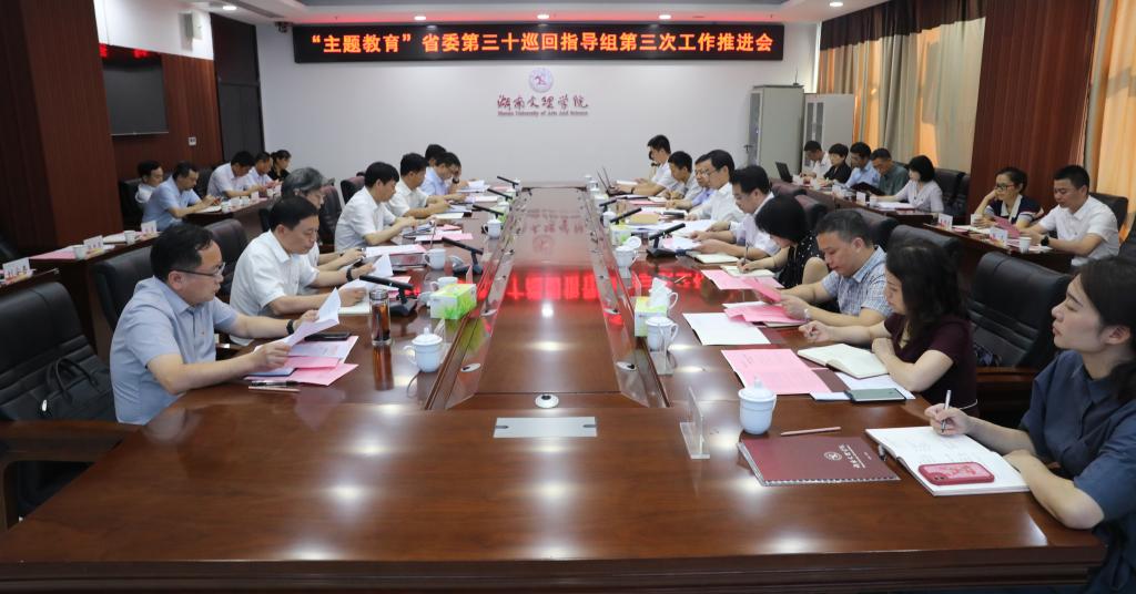本网讯 6月20日上午,省委主题教育第三十巡回指导组在湖南文理学院办公楼召开所指导7所高校主题教育现场推进会,对主题教育进行再督促再指导。省委第三十巡回指导组组长徐云波出席会议并讲话,副组长李可兴主持会议并传达学习中央、省委主题教育巡回指导组两级座谈会议精神,全体巡回指导组成员、所指导高校党委书记、组织部长、宣传专员、综合联络员等参加会议。