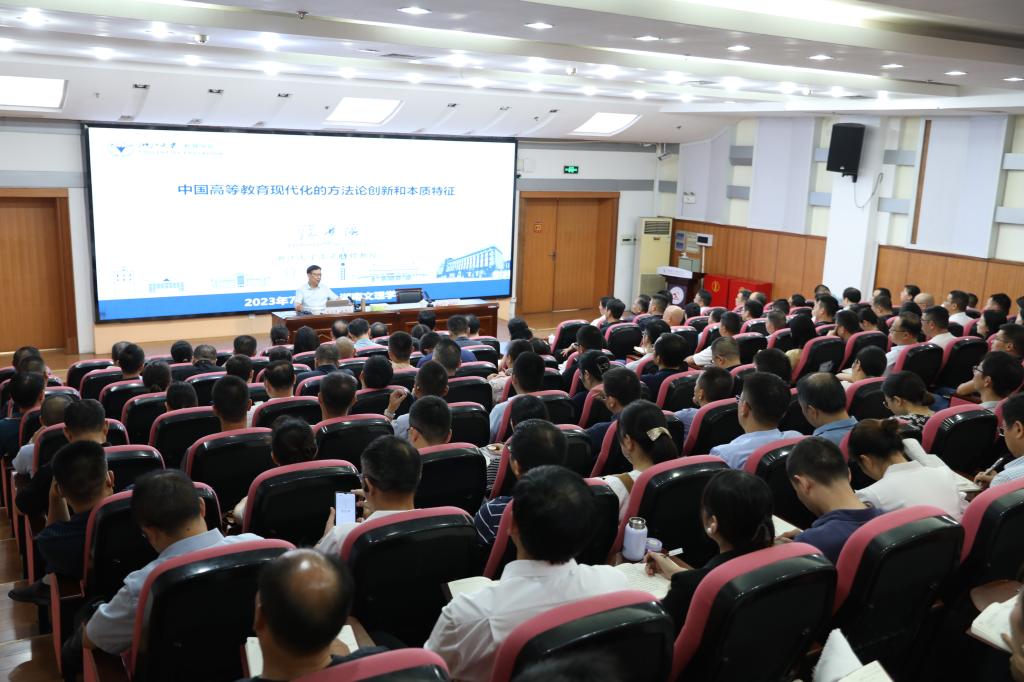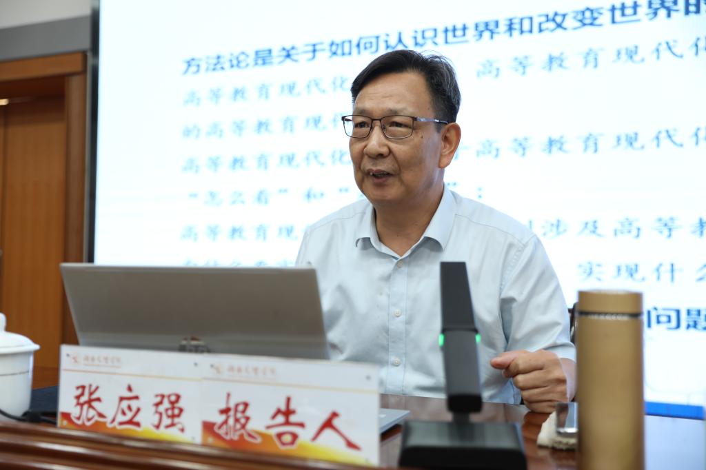 张应强教授报告的题目是《中国高等教育现代化的方法论创新和本质特征》。他在报告开篇指出,20世纪中叶以来,高等教育现代化日益发展成为一种世界性高等教育运动。改革开放以来,特别是党的十八大以来,我国高等教育现代化始终坚持以习近平新时代中国特色社会主义思想方法论为指导,实现了高等教育现代化方法论创新,开辟了世界高等教育现代化新赛道、新形态和新范例,为世界高等教育现代化多元发展提供了全新选择。