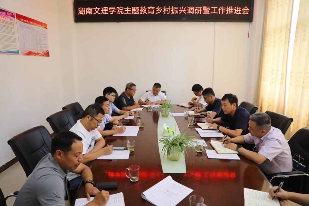 本网讯(记者 袁勇军)8月3日,湖南文理学院主题教育乡村振兴调研暨工作推进会在石门县子良镇茶园湾村村部会议室举行。我校党委副书记、校长刘宇文,党委委员、组织部部长郭杰荣,石门县子良镇党委副书记、镇长喻爱军,我校党政办、机械工程学院负责人,驻村工作队队员以及茶园湾村党总支负责人参加会议。会议由郭杰荣主持。