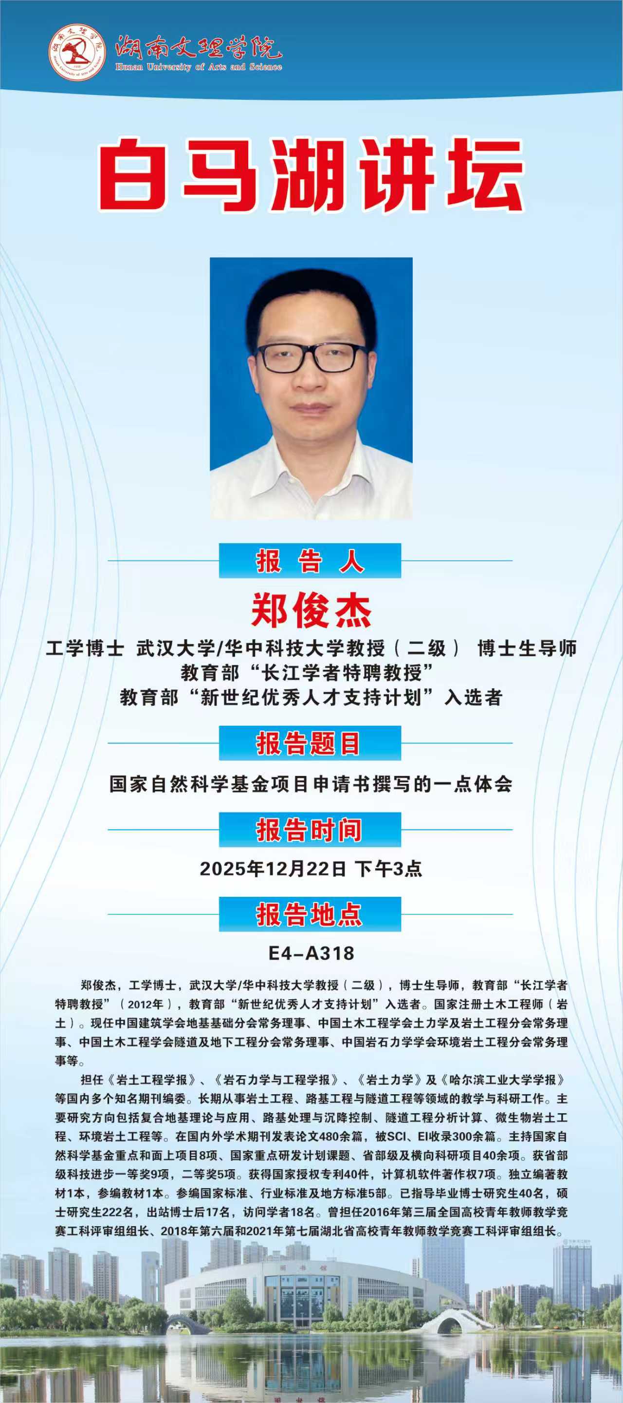 学术报告预告|武汉大学/华中科技大学郑俊杰教授报告会
